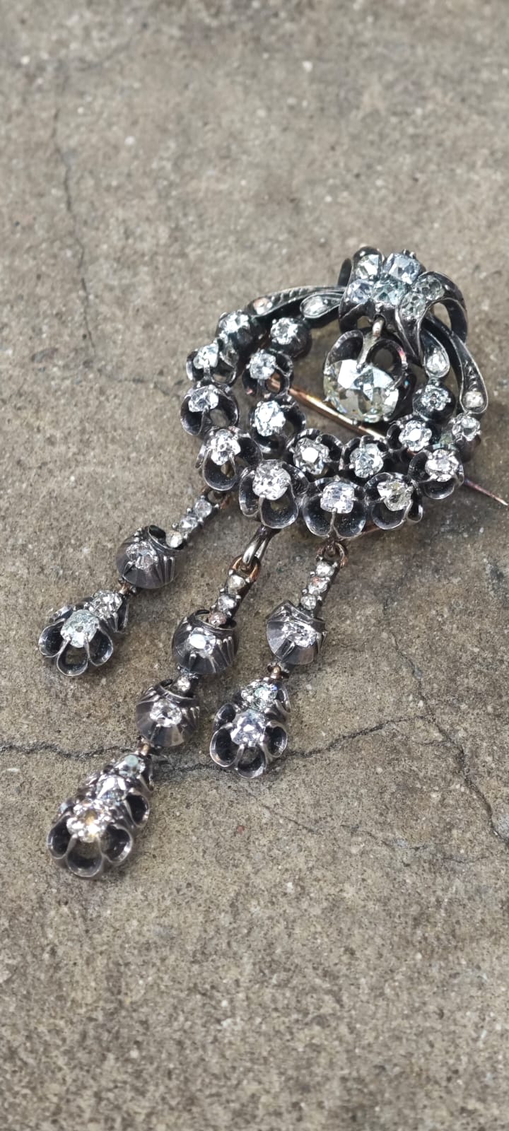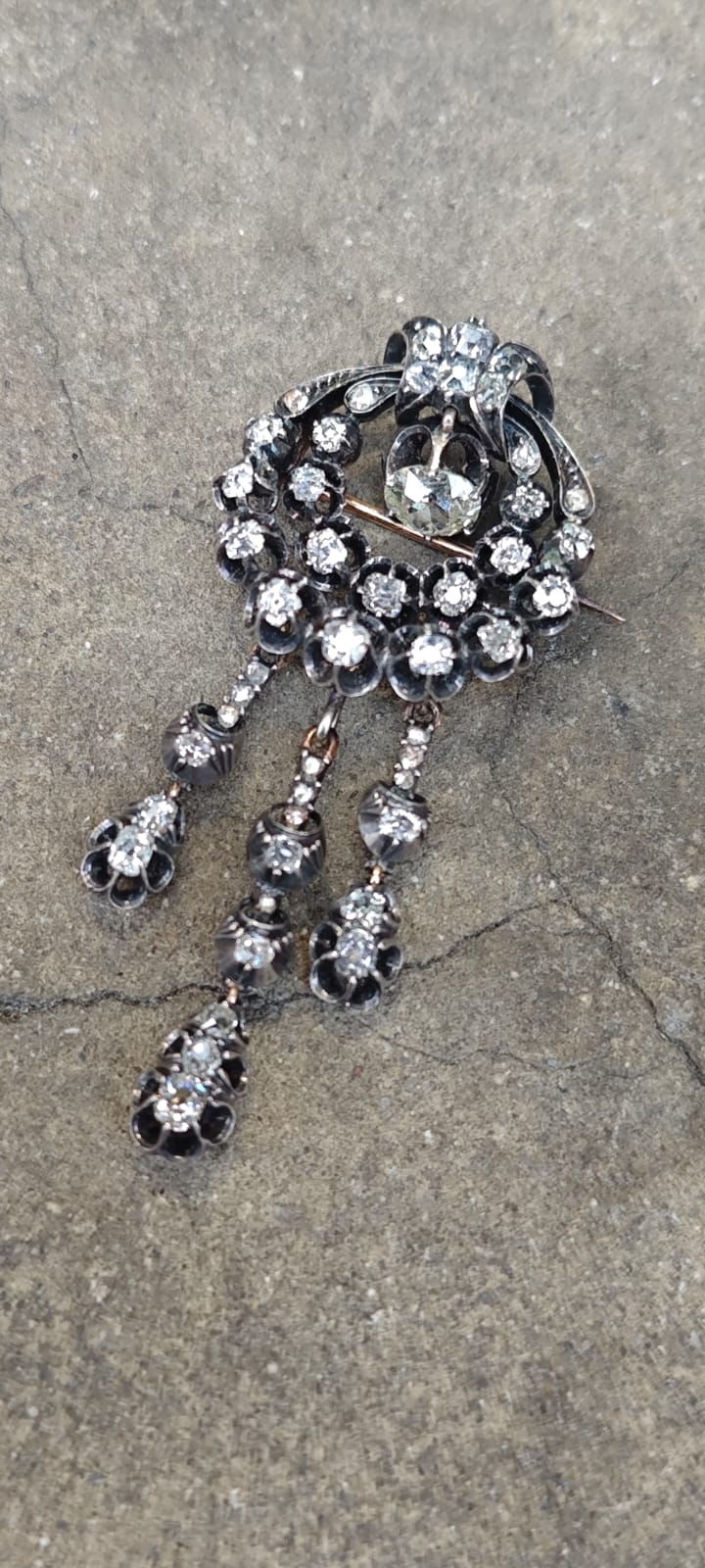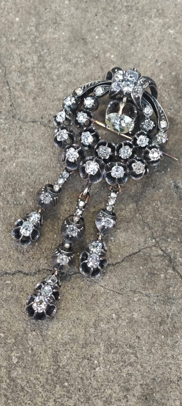 Broszka secesyjna z końca XIX wieku Stare szlify poduszkowe, rozety